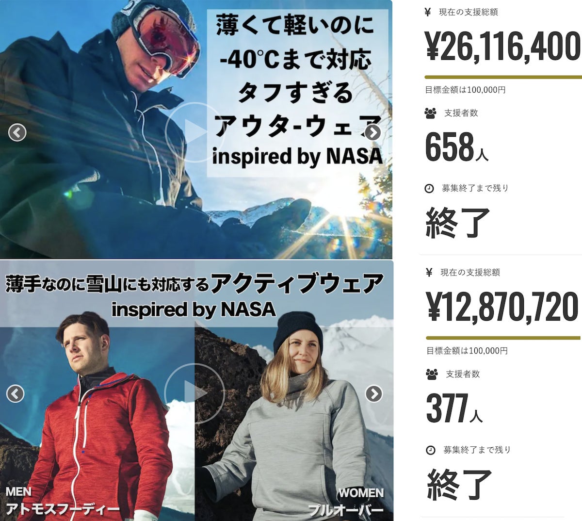 宇宙科学で注目される素材を一般のアパレルに応用したのです。その結果、圧倒的な超防寒を実現したのです。