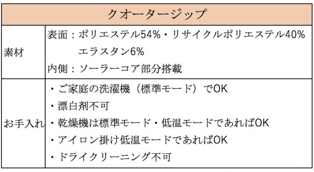 ※ 上記画像は前プロジェクトのORION PARKAです。クオータージップにも部分的にソーラーコアが同様に使用されています