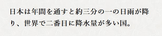 実は日本の降水量は世界平均の約2倍、世界で二番目に降水量が多い。