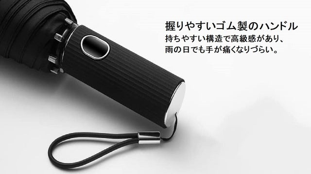 ✅ 通常の傘はプラスチック製のところ、握りやすく高級感のあるゴム製のハンドル。雨の日でも手が痛くなりづらい。(※ハンドル部に若干のぐらつきを感じるかもしれませんが、折り畳み傘の開閉にあたる仕様上のものなので、故障ではございません。あらかじめご了承くださいませ。)