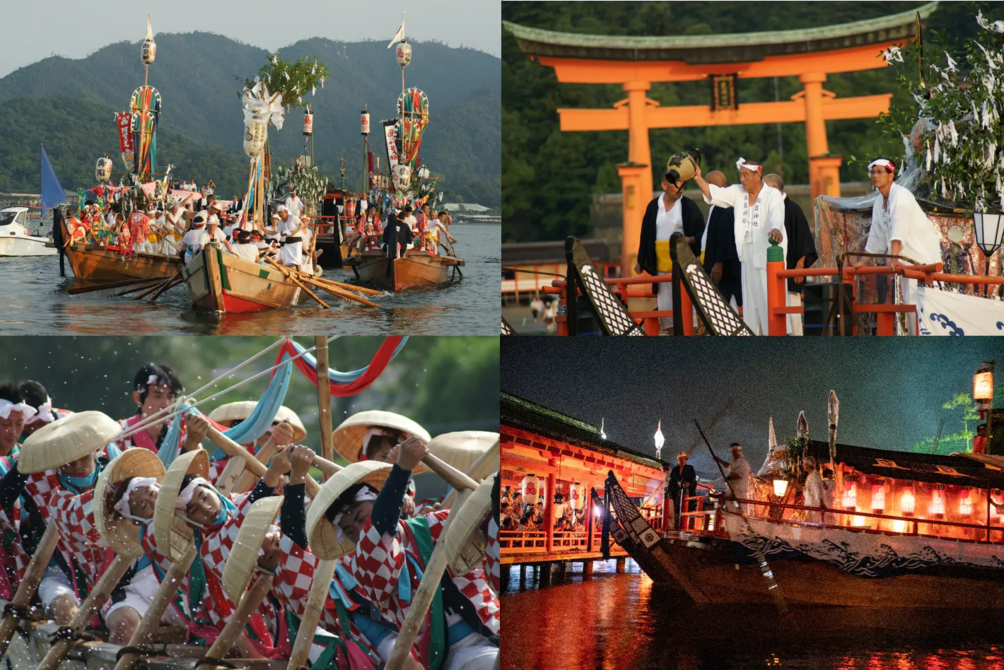 年に1回広島湾全体を舞台に潮流の自然のサイクルの中、古来の「 宮島の、かたち。」を現在に伝え、宮島という空間的魅力を最大限に感じることのできる管絃祭という祭。