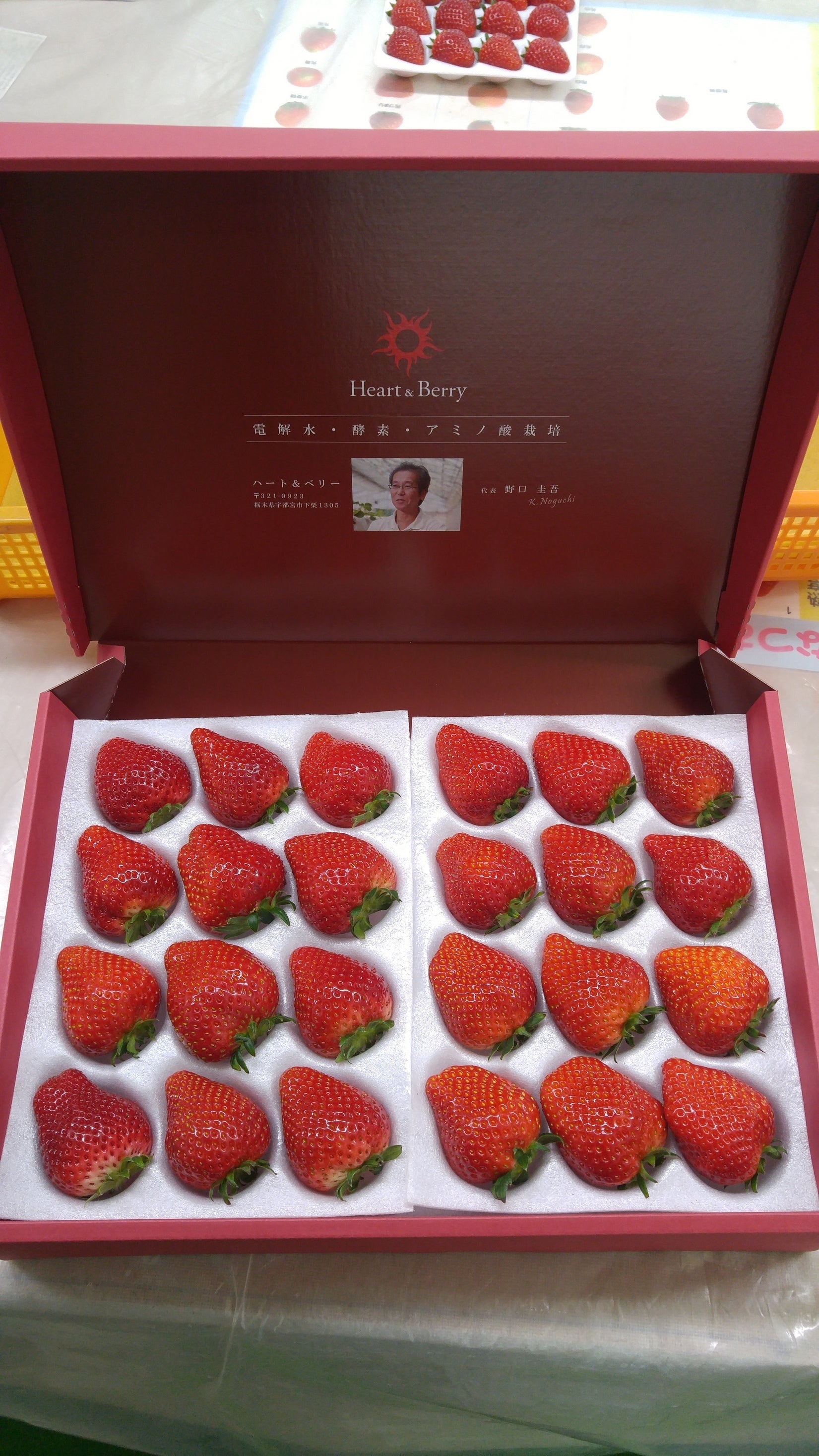 日本一の苺の生産地、栃木県の宇都宮市で苺の生産、販売を行う農業法人、株式会社ハート&ベリーの代表を務めます野口圭吾と申します。もともと出身は栃木ではなく、農家でもありませんでしたが小さいころからの夢である農業を目指し、約20年前に脱サラして宇都宮に来ました。未来を担う子供たちに安心安全高品質の苺を食べてもらいたく、日夜努力を重ねています。