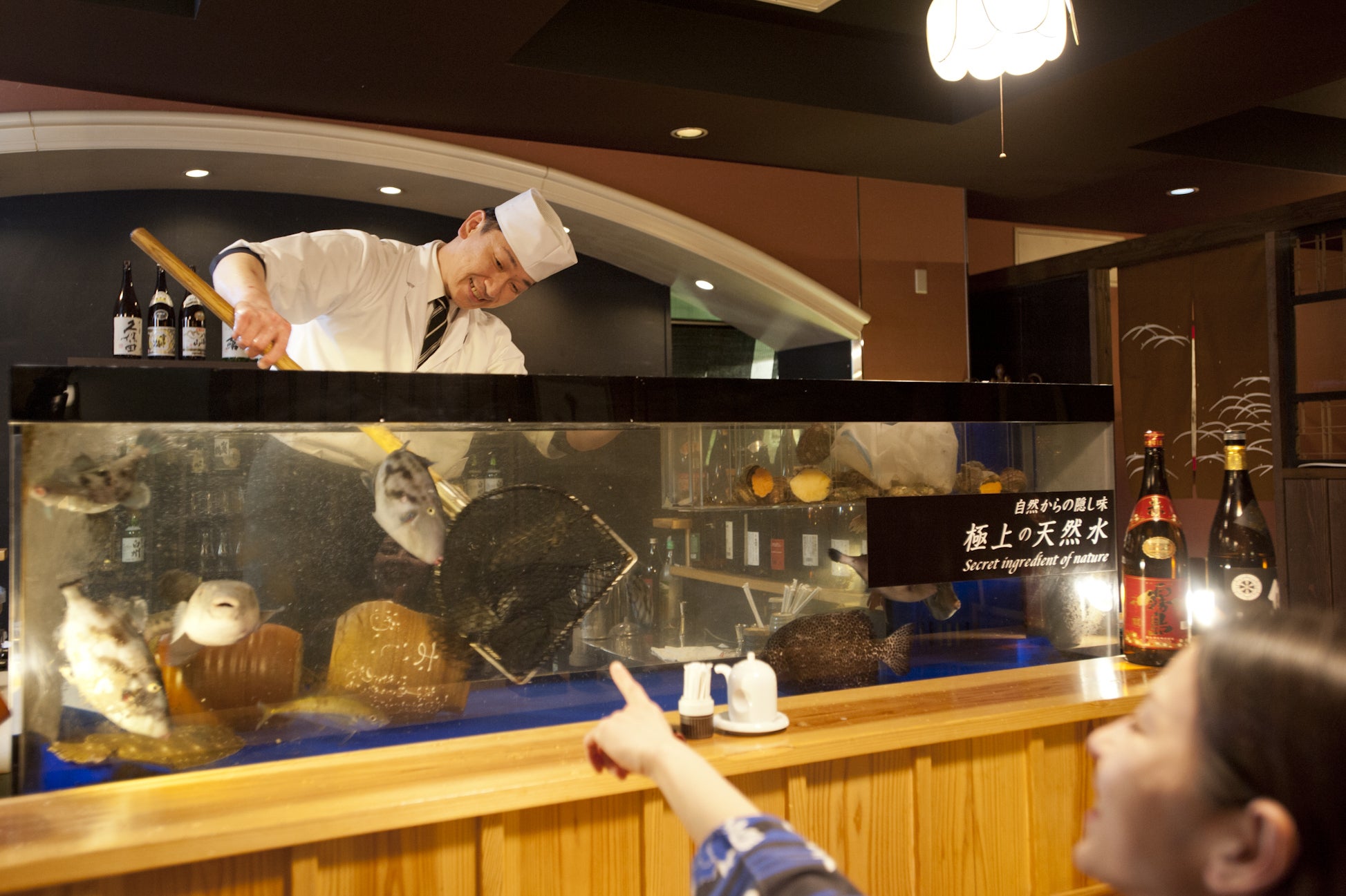 写真/レストラン「名水の里」内の水槽(日本海からのお魚たち)