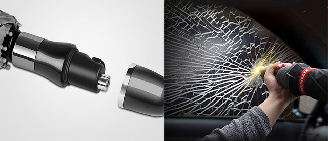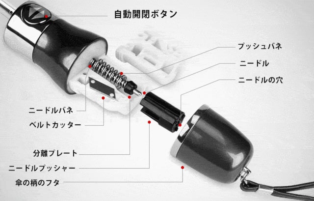 傘の柄の部分が外れて車の窓ガラスを簡単に割ることができるようになっています。
