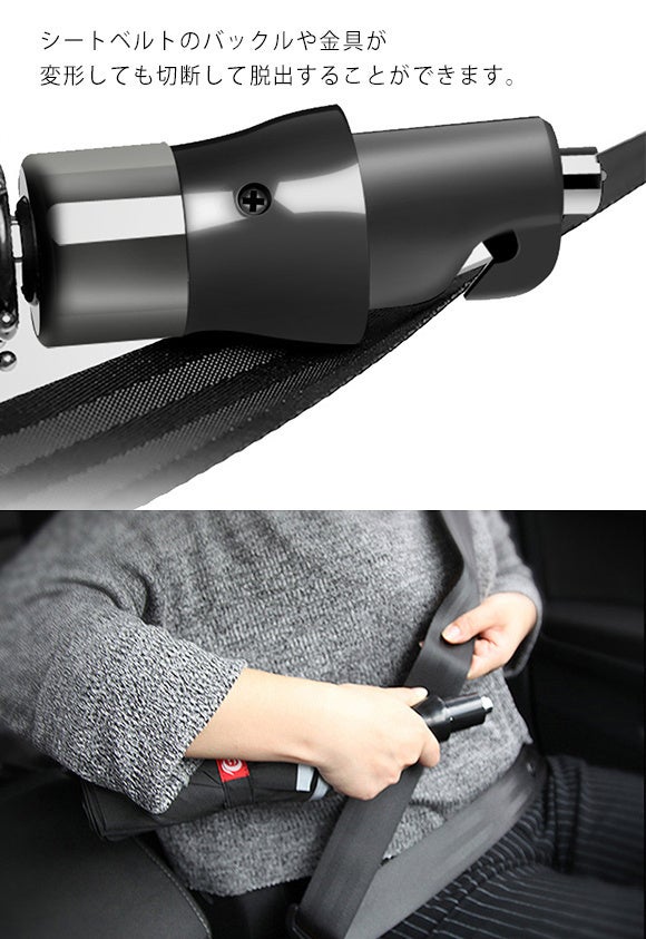 柄の部分に内蔵されたカッターで切断して脱出できます。