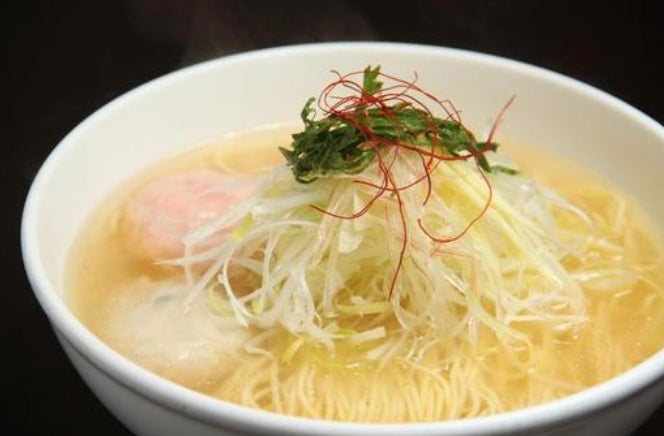 鱈のすり身に海老を練り込んだつみれと、細かく叩いた軟骨を散りばめた鶏つくねを乗せました。スープの味に変化を出すために薬味は白髪ねぎ、みょうが、針しょうが、大葉、糸唐辛子の五種類を乗せています。