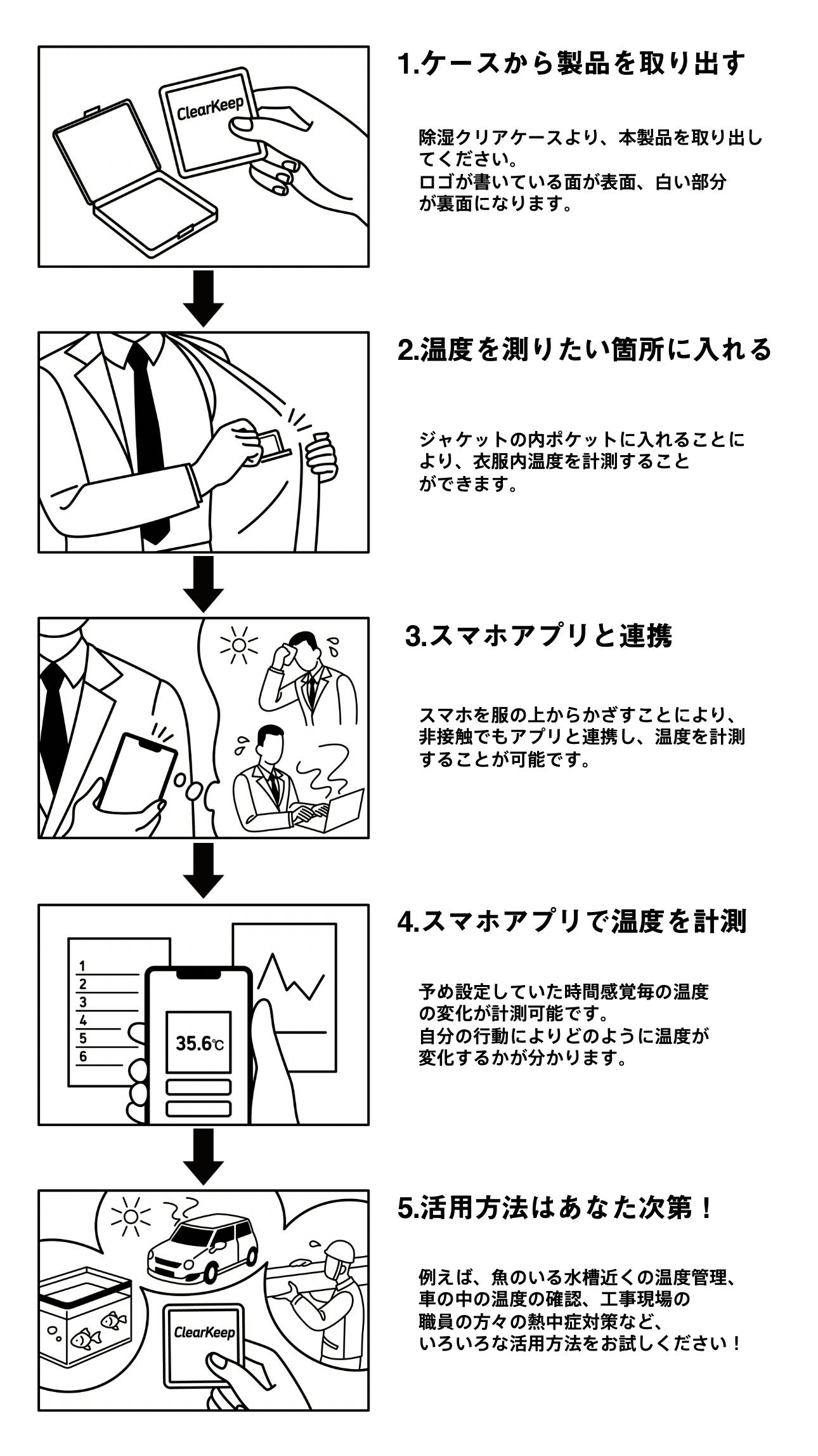 コロナ禍で体調管理が一番大事なことになっている今、皆様に喜んで頂ける温度キャッチ、データ保存、そして日々のデータ分析もできる製品として、ClearKeepが皆様の健康管理にすこしでも役に立てましたら幸いでございます。