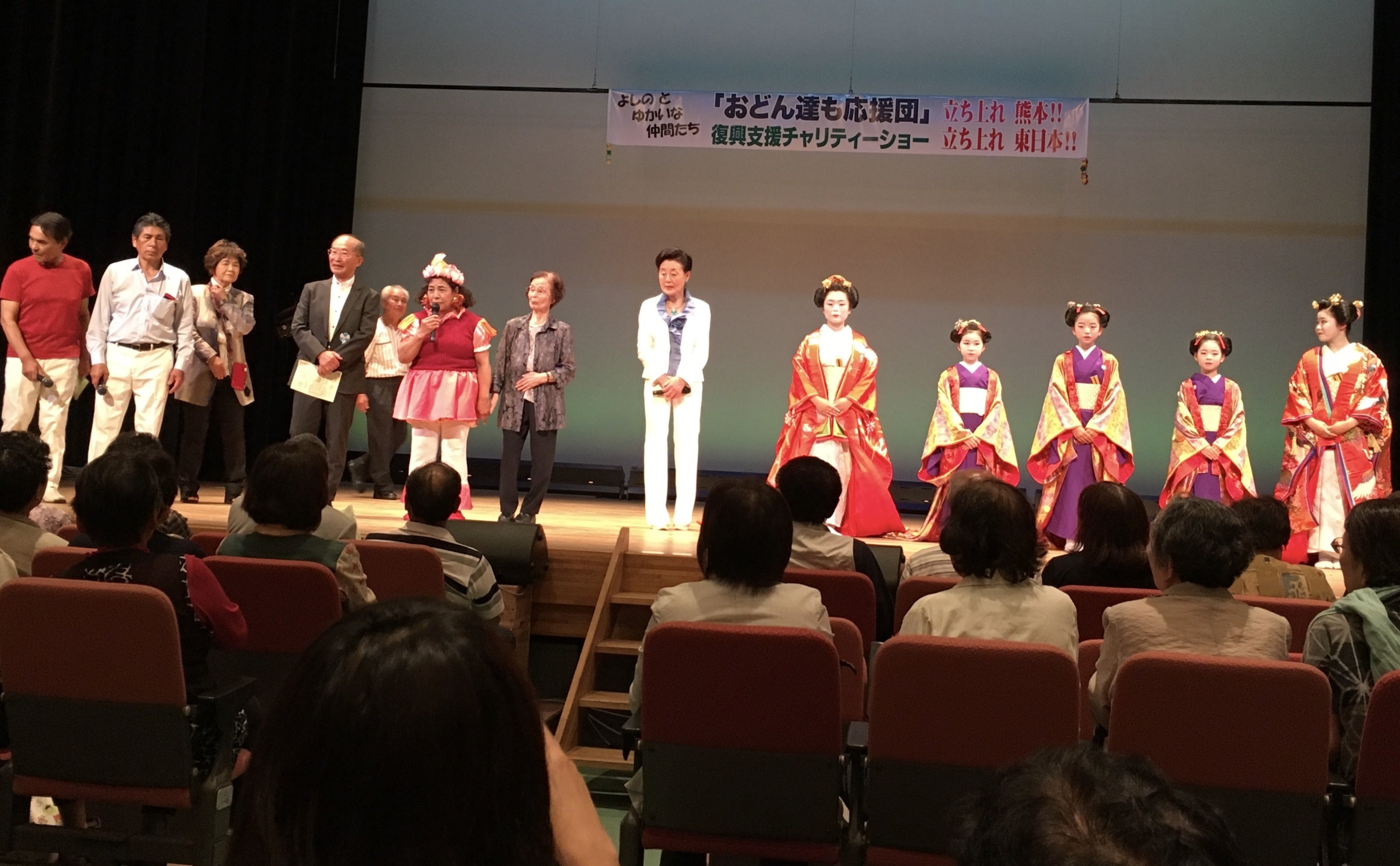東日本大震災と熊本大震災の復興支援として、通算9年間の復興チャリティーショーを、毎年満席御礼で開催しています。この写真は昨年開催されたチャリティーショーで、大阪から私も、滋賀県に住む母の友人と一緒にこの支援活動を初めて観覧に帰省しました。