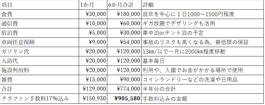 ③旅の資金(半年間)