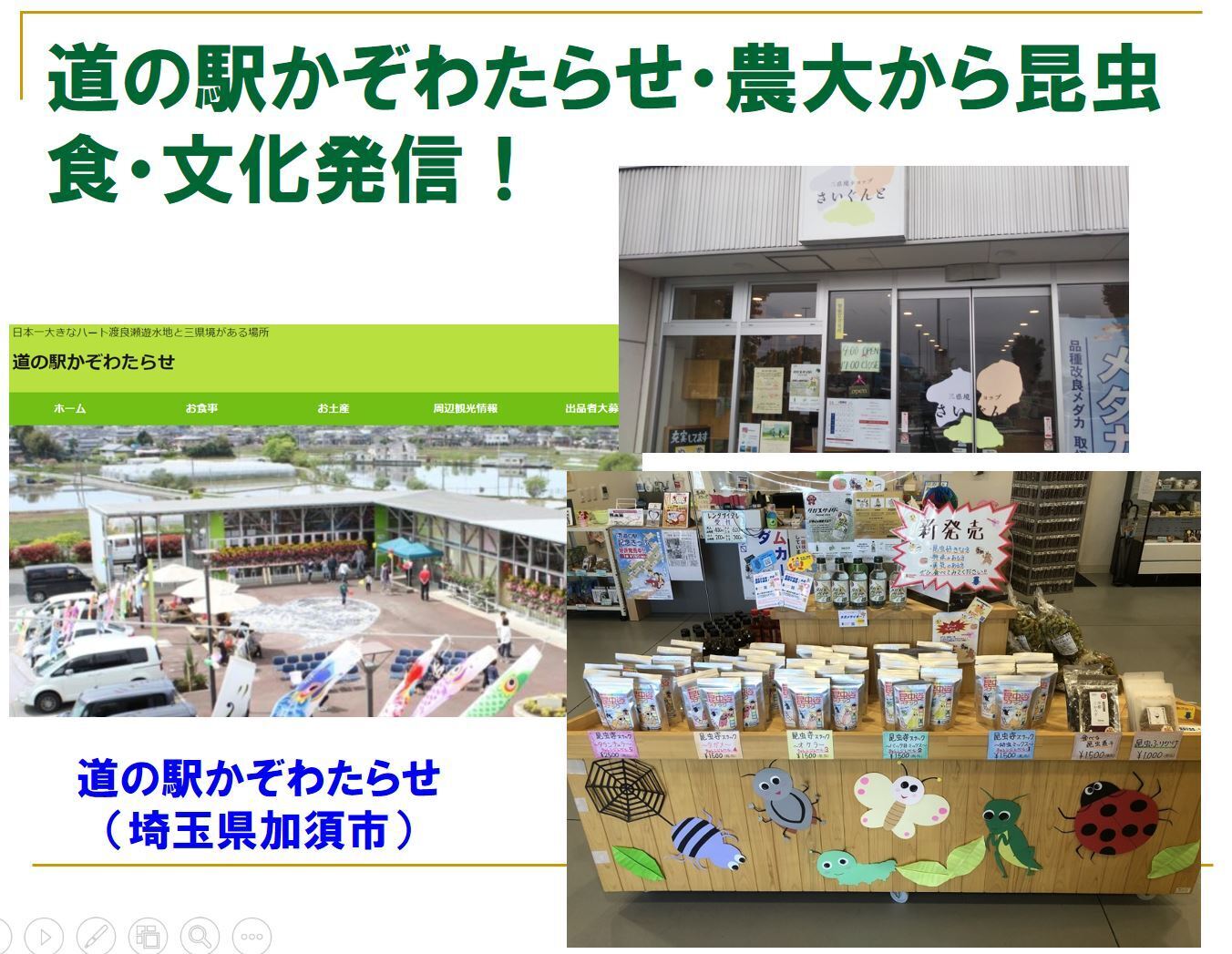 業は「産学官連携」を目指し地元埼玉県の名産品として、昆虫食の更なる普及、そし