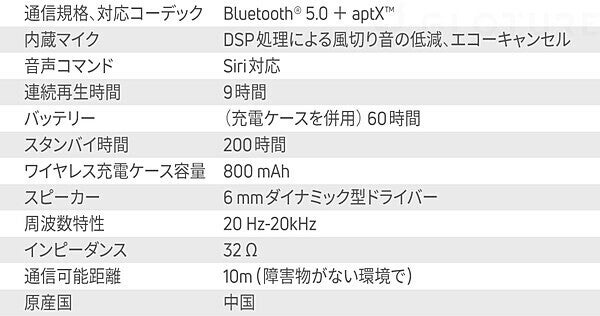 音質の肝である音声圧縮コーデックには、高音質でタイムラグがほとんどないと評判のQualcomm aptXを採用。