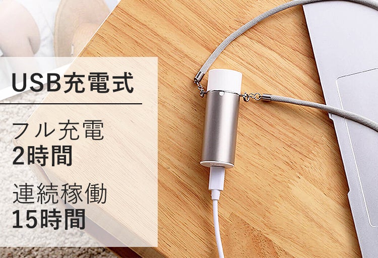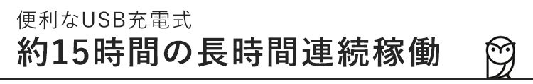 ② 最長15時間連続稼働、便利なUSB充電式