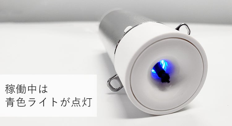 本体裏面の電源ボタンを押すだけの簡単操作で、マイナスイオンが生成され、速やかに空気中に放出されます。稼働中は、放出口内部が青色に光ります。