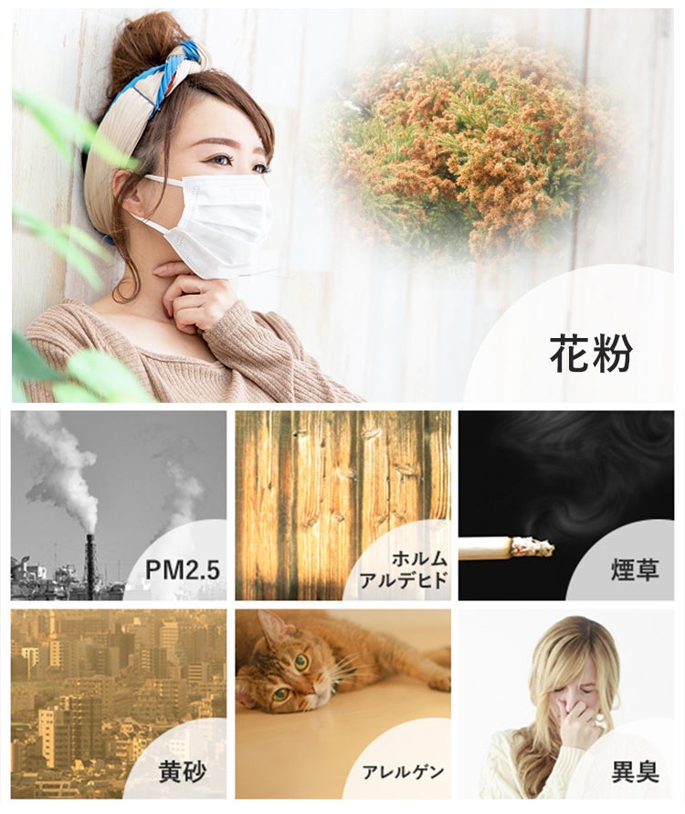 花粉、ホルムアルデヒド、煙草の煙、PM2.5、動物の毛や皮脂に含まれるアレルゲン物質、そして異臭。空気中には、様々な有害物質が蔓延しています。