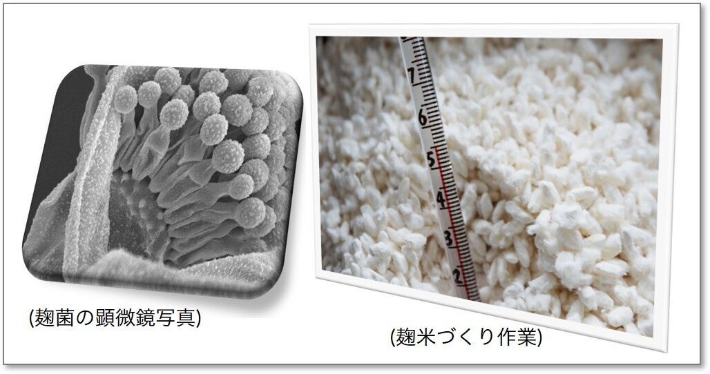 古くから味噌、醤油などの製造には“黄麹”と呼ばれる麹菌が使われてきました。同様に日本酒、焼酎のようなお酒の製造にもこの“黄麹”が使われてきました。“黒麹”はもともと泡盛に使われていた麹菌です。“黒麹”は“黄麹”と比べ、大量のクエン酸を生成するのが特徴です。