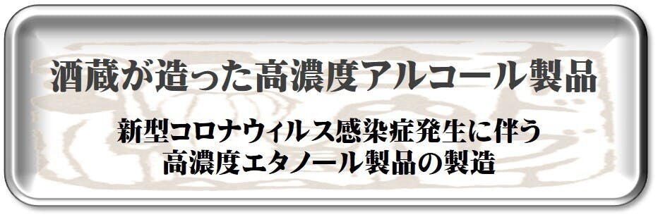 日本中の日本酒の蔵元と、焼酎の蔵元が手を組めば、日本の消毒アルコール不足に大きな貢献が出来るはずです。との声が酒蔵から上がりました。このような状況を鑑みて、当酒蔵も、消毒液不足解消に務めたいと高濃度エタノール製品の生産を開始しました。