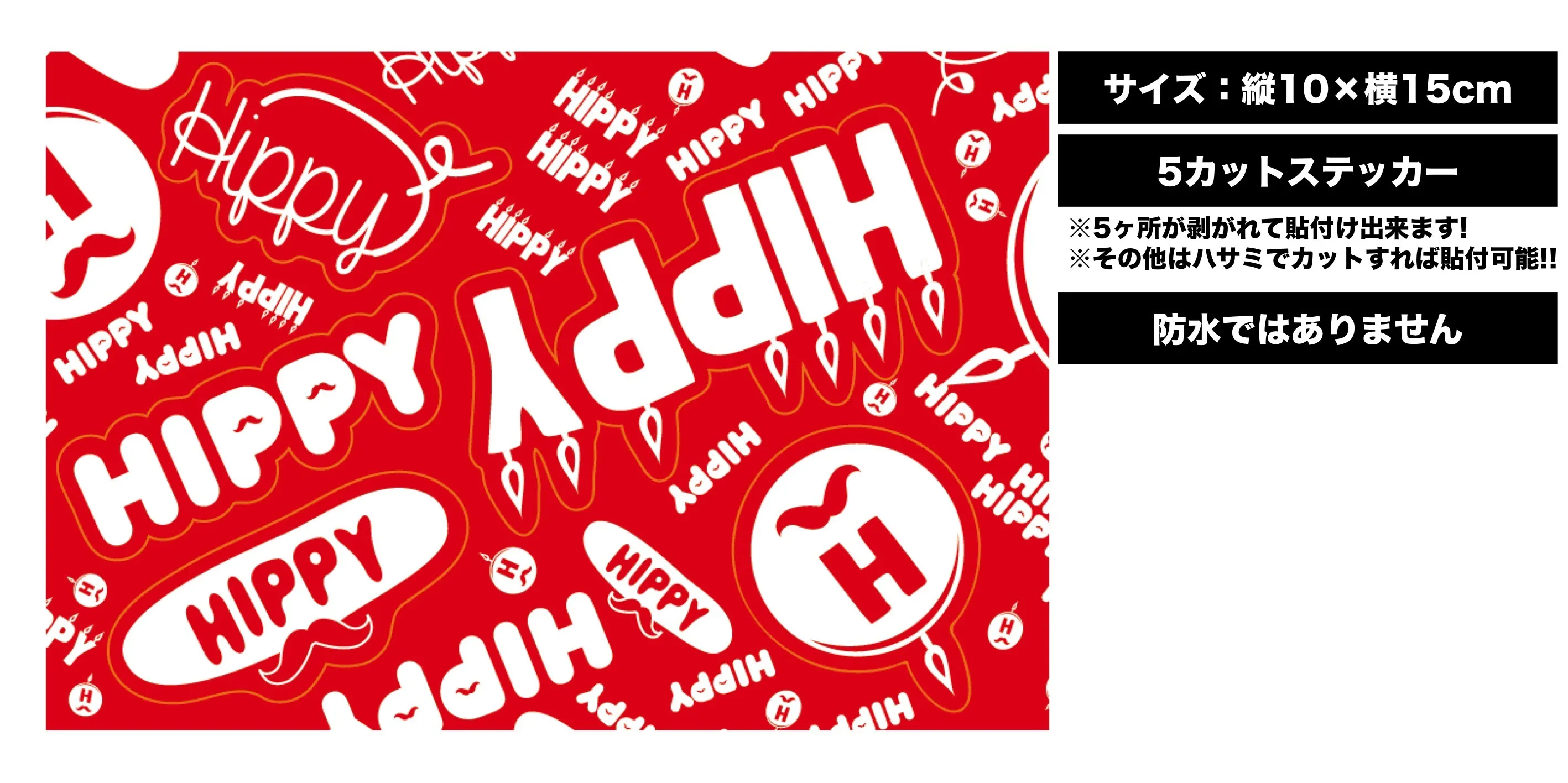 ロゴ5ヶ所がカットされており、ロゴ毎に剥がせるようになっております。