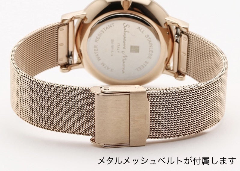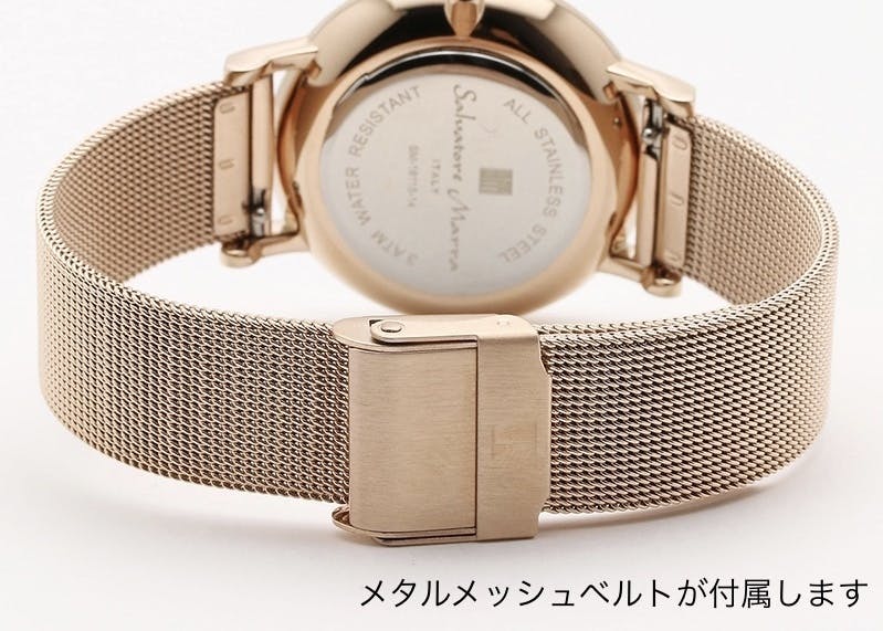 レディースウォッチとしては少し大きめのボーイズサイズ(ケース径34mm)の文字盤に映える螺鈿アート、スワロフスキー®︎クリスタルをふんだんにあしらったストラップとの組み合わせは腕元に確かな個性を示します、パーティドレスやカジュアルスタイルでのコーディネイトが楽しくなるアイテムです。また付属のメタルメッシュベルトに付け替えることでスーツスタイルとの親和性も高まります。
