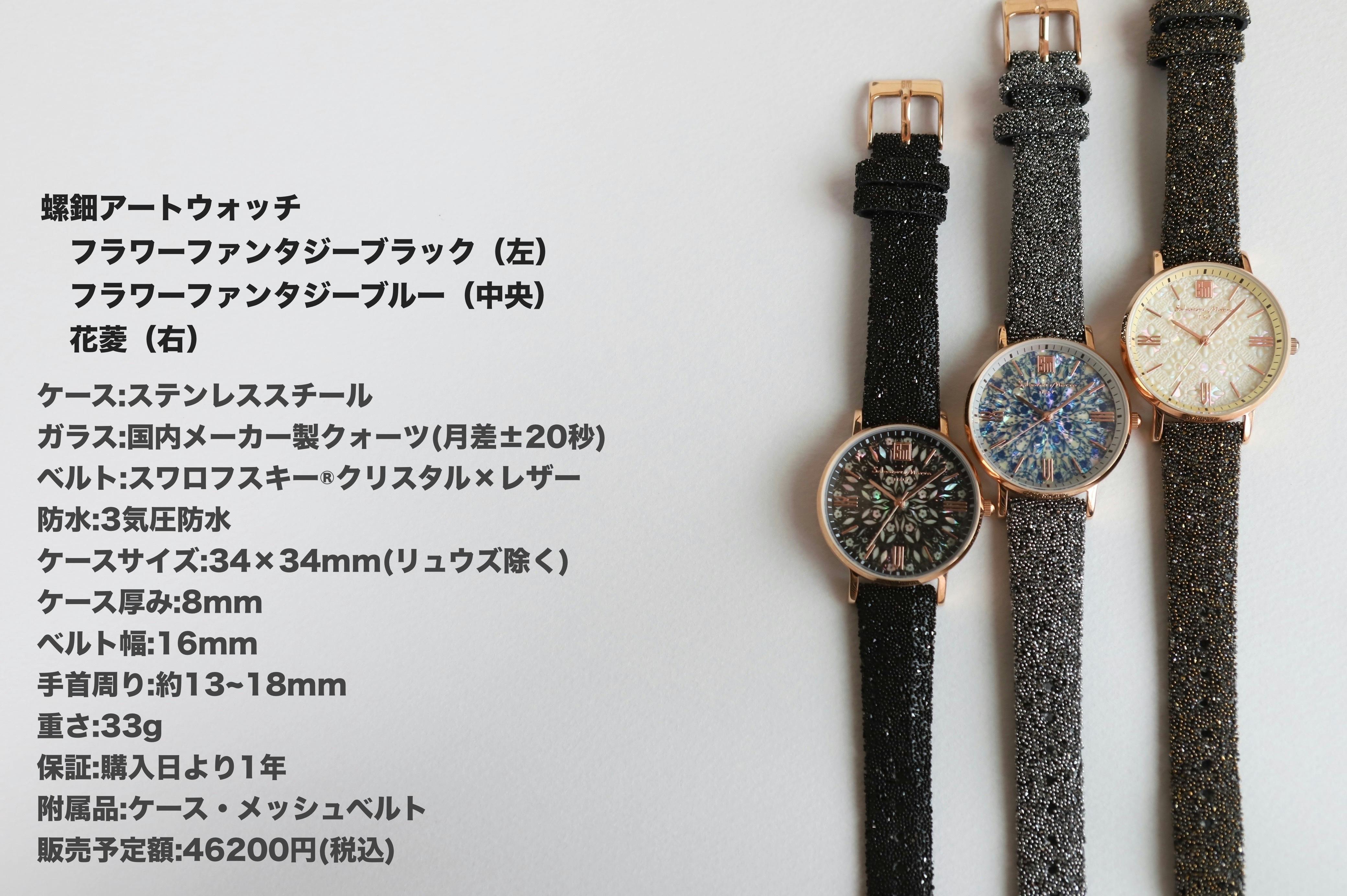 ①螺鈿アートウォッチ35%OFF 46,200円→30,030円 フラワーファンタジー ライト/フラワーファンタジーブラック/花菱各10点