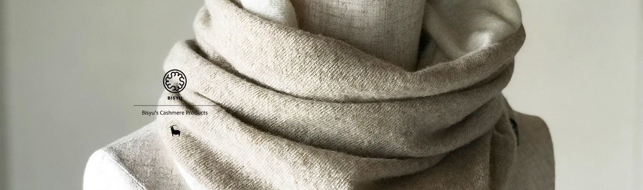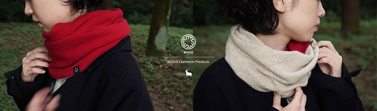純カシミヤ本来の優しい肌触りに仕上がったスヌードとストール。