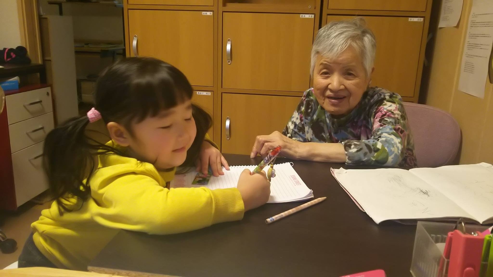 (デイサービスおたがいサロンのゆうこさんと女子児童)