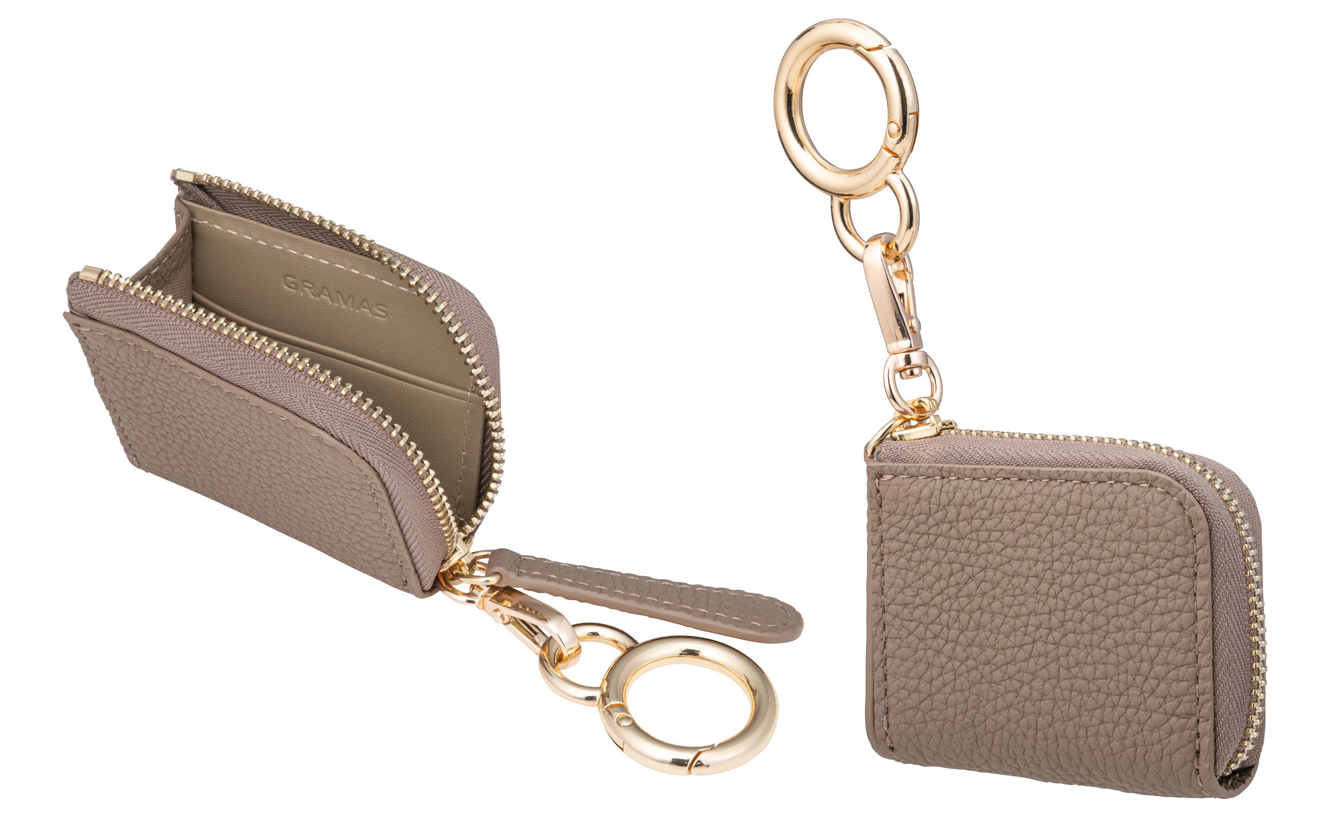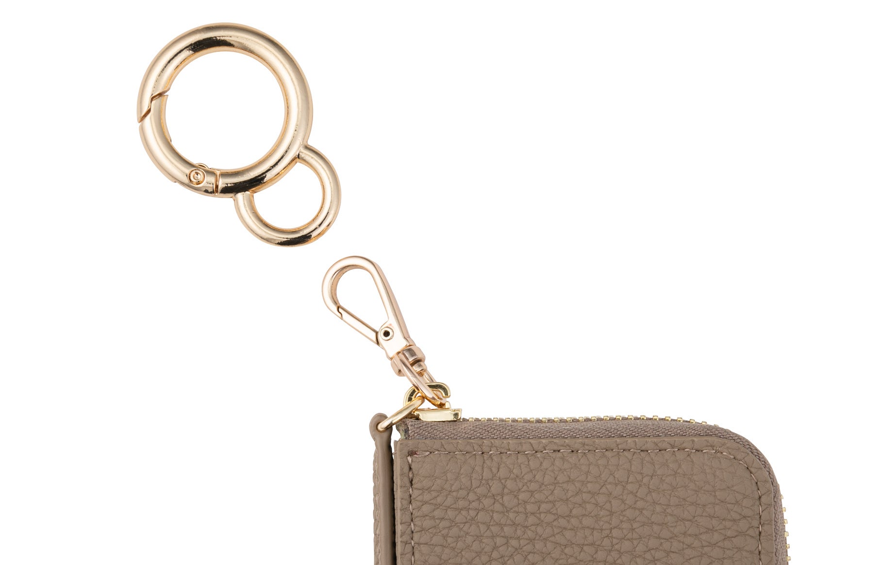 カギやファスナートップのような小さな物に取り付ける場合は(丸型カラビナを外して)「涙型」のフックをお使いください。