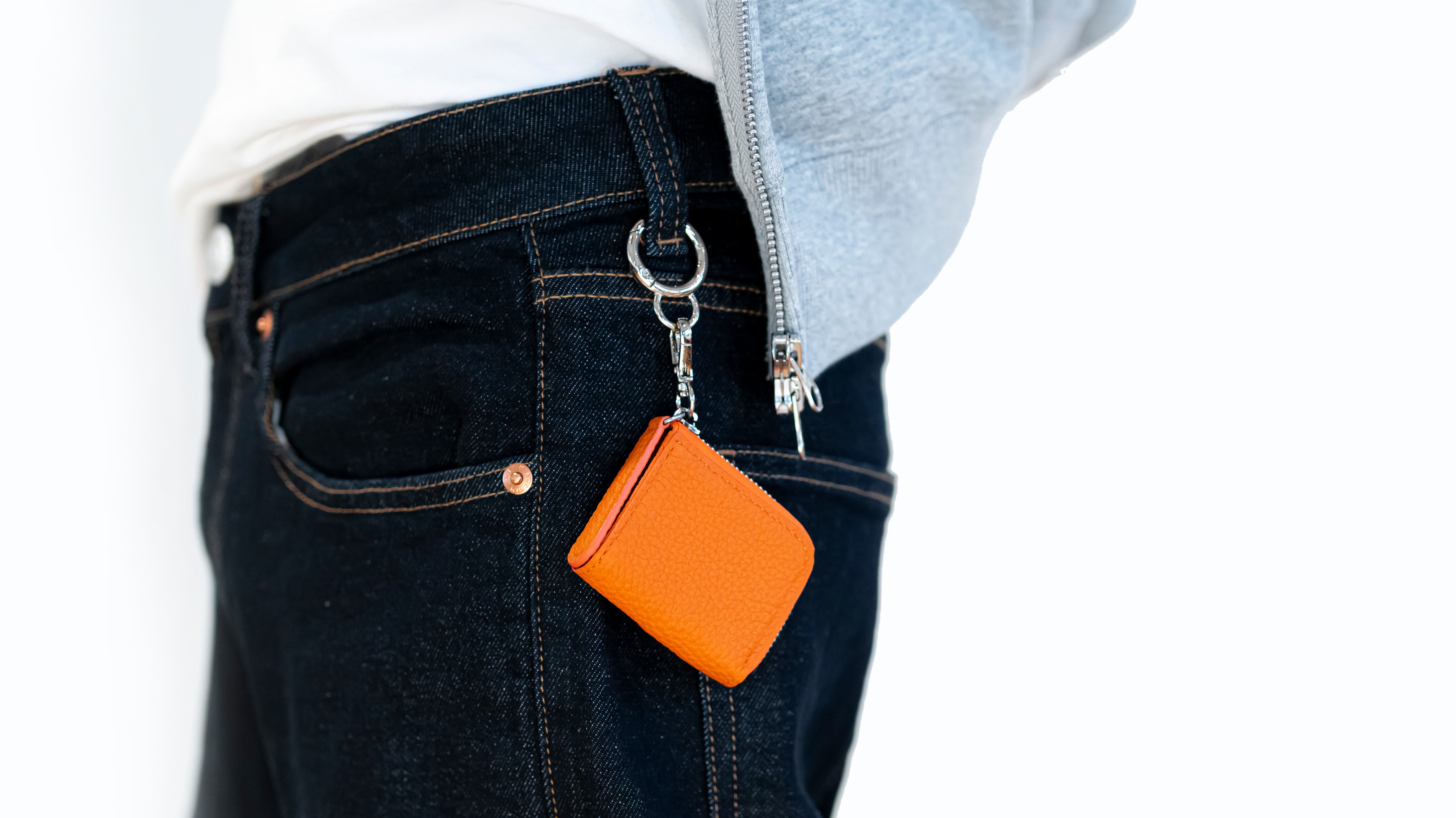 バッグやパンツへの取り付けに便利なカラビナフックは、取り付ける場所や物に合わせてサイズを選べる2WAY仕様。
