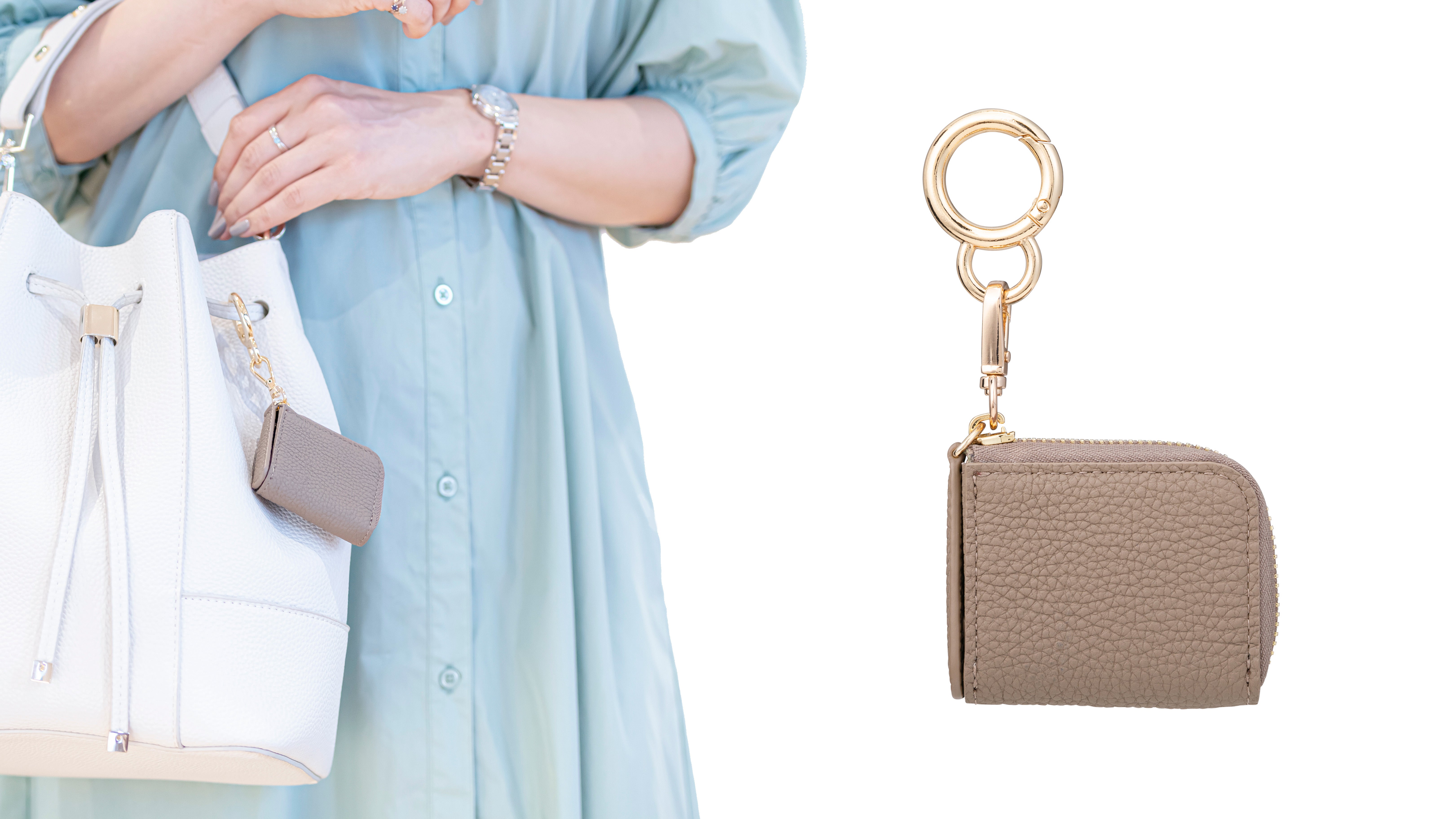 バッグの金具やパンツのベルトループなどに取り付ける場合は「丸型」のカラビナを、