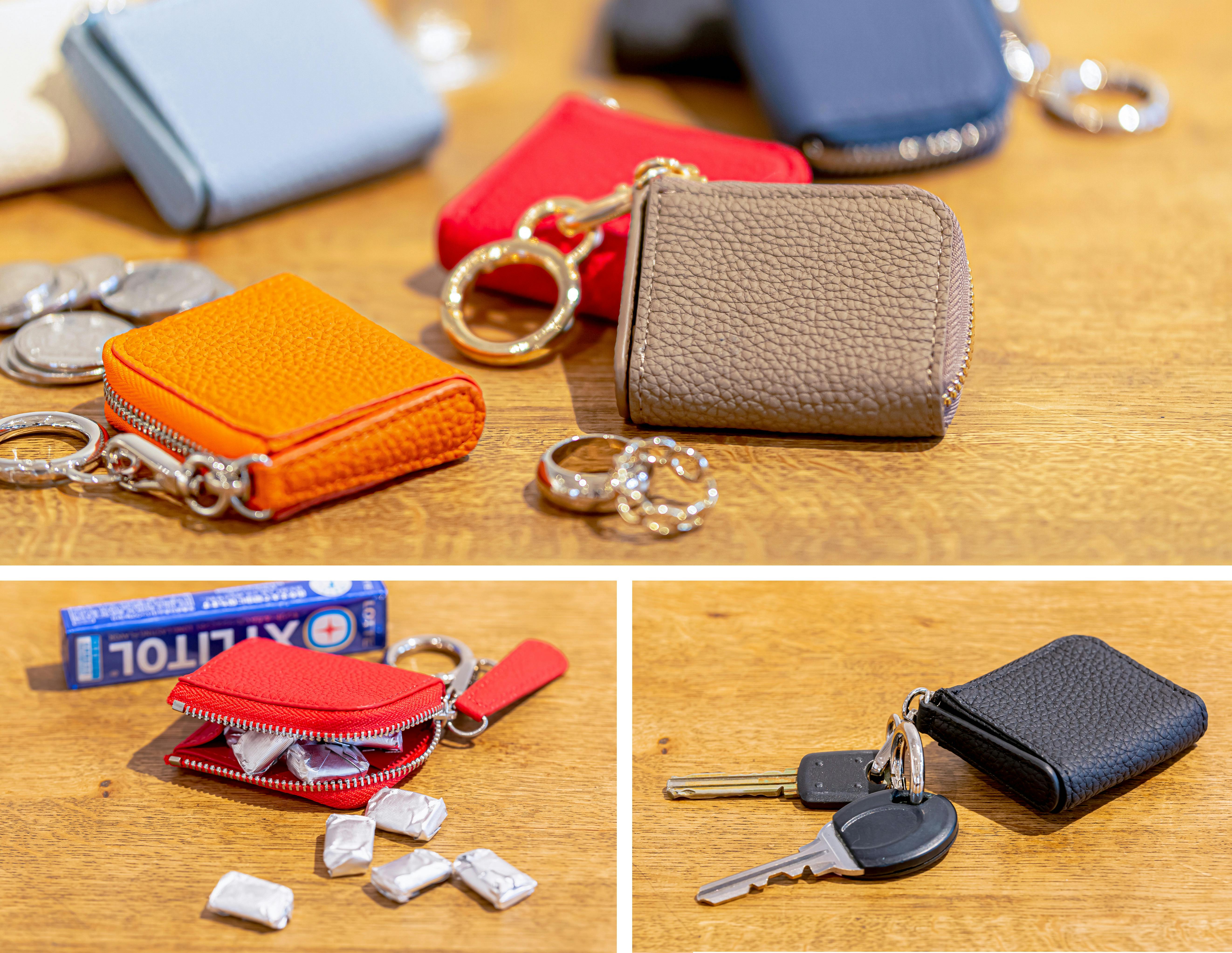 ❶ 現金決済をミニマルに、スピーディーに!❷ 持ち運びに便利な2WAYカラビナフック付き❸ 欧州メゾンでもバッグなどの素材に用いられるシュランケンカーフ(牛本革)使用。大人が安心して使える上質な質感です。