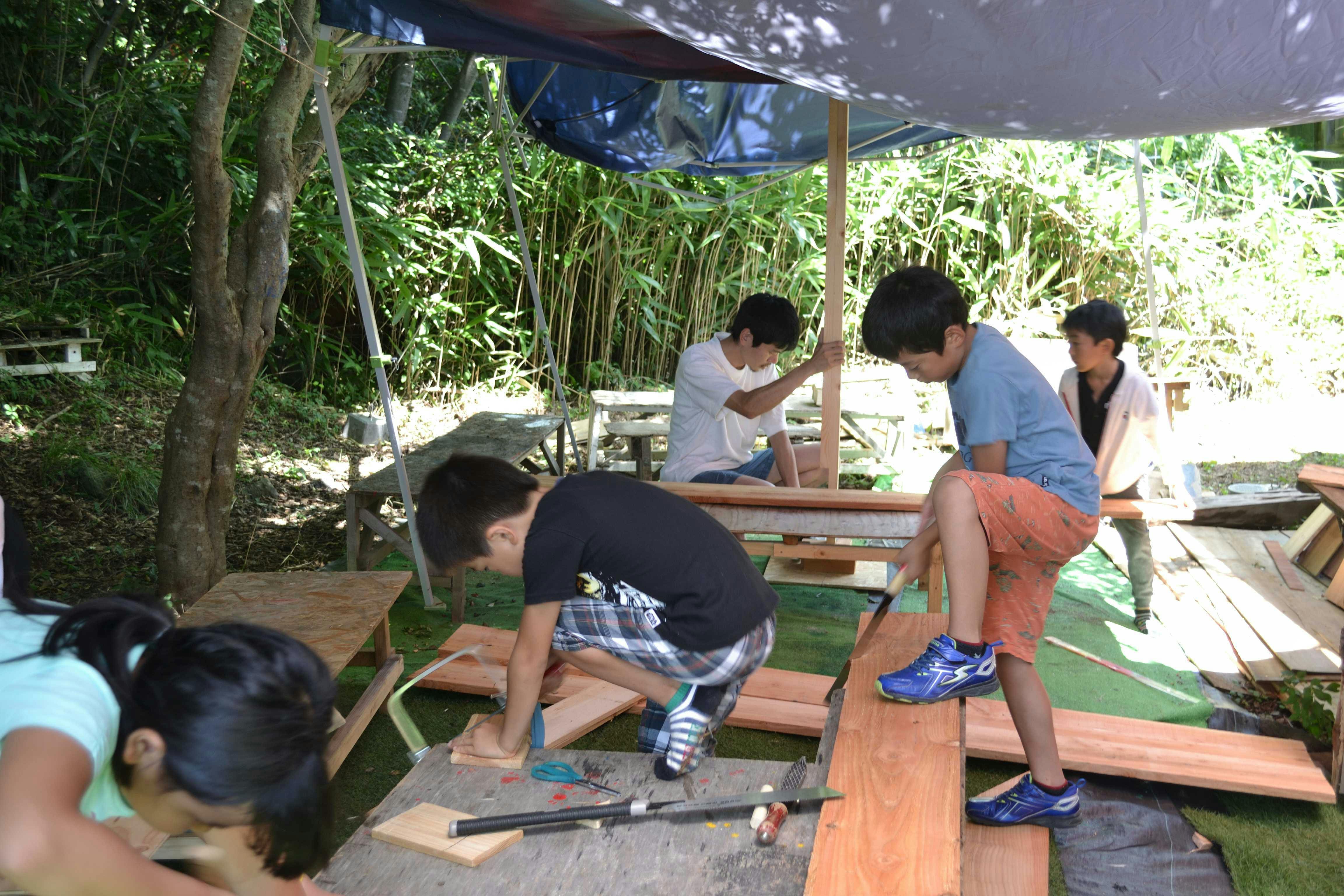 次年度から、この大自然の中で全身を使ってものをつくり出す子どもたちに、思いっきりものづくりを叶えられる場を提供したいと、このものづくりワークショップがはじまりました。