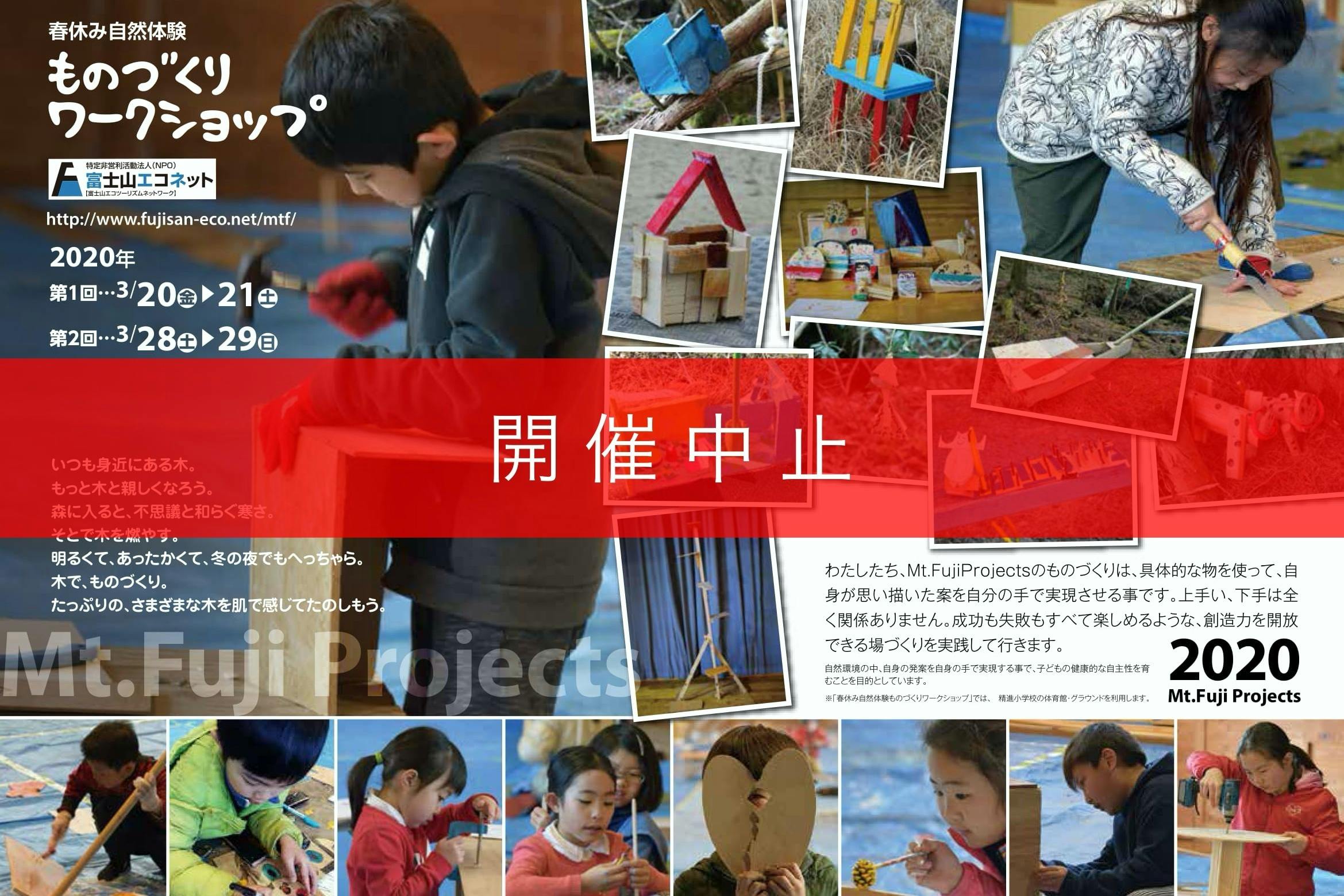 今回中止となった「Mt.Fuji Project 2020 春休み自然体験ものづくりワークショップ」