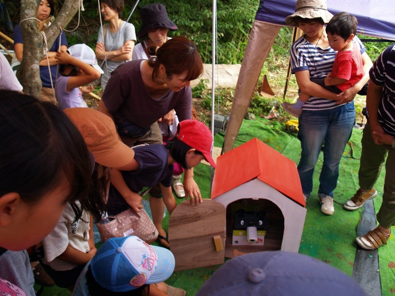悩みの種だった雨天でも制作に支障が出る事がなくなり、Kamiku Studioを拠点として周りの空き地も子どもたち自身で制作場、遊び場へと広げ、庭・裏庭・裏山と徐々に子どもたちの作品も多くなりました。同年代の子たちが触発し合う場へと環境も整いました。