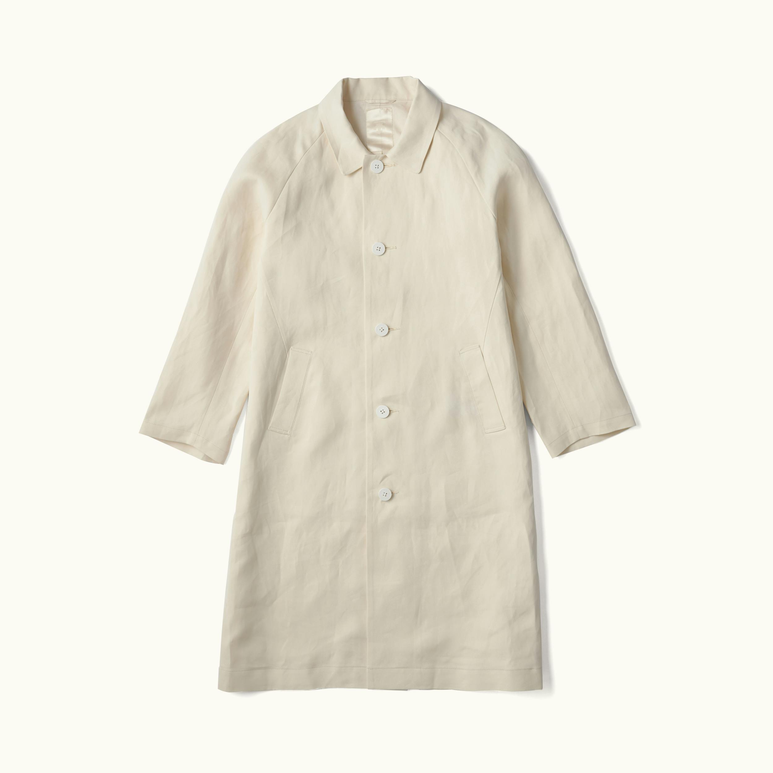 今回のこのロングコートでは、染めないことで1着当たり 約150リットルの水を節約。水の使用量を減らすことで、さらにサステナブル活動に貢献することを目指しました。