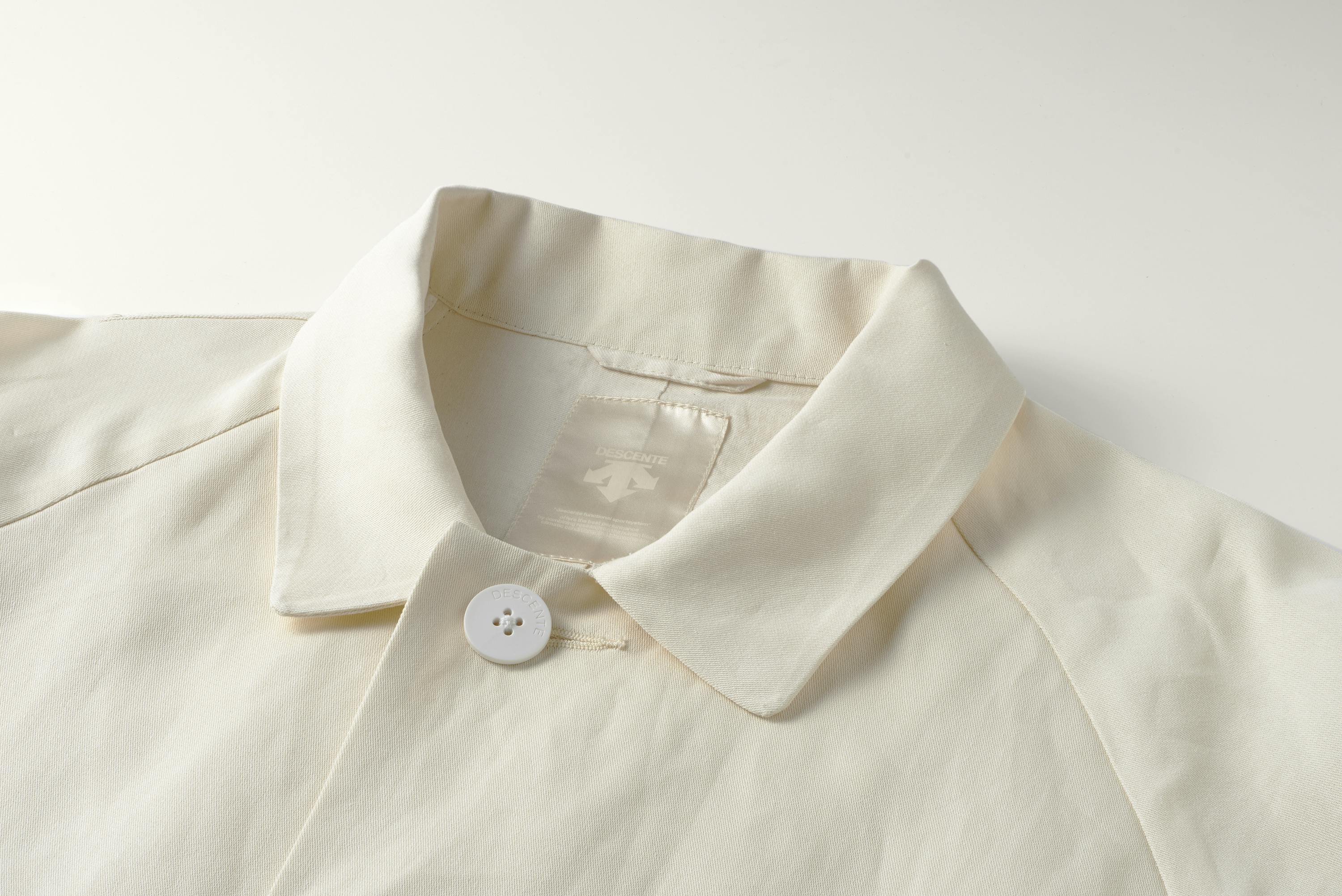 製品ラベルや、ボタン、縫製糸、接着縫製に使用する接着剤などの副資材も生分解性の原料にこだわり選定。全て日本の工場で生産した、完全日本製のアイテムになります。商品名は、「RE: DESCENTE SEED100 KAMITO Coat “REASSURE CP” 」。