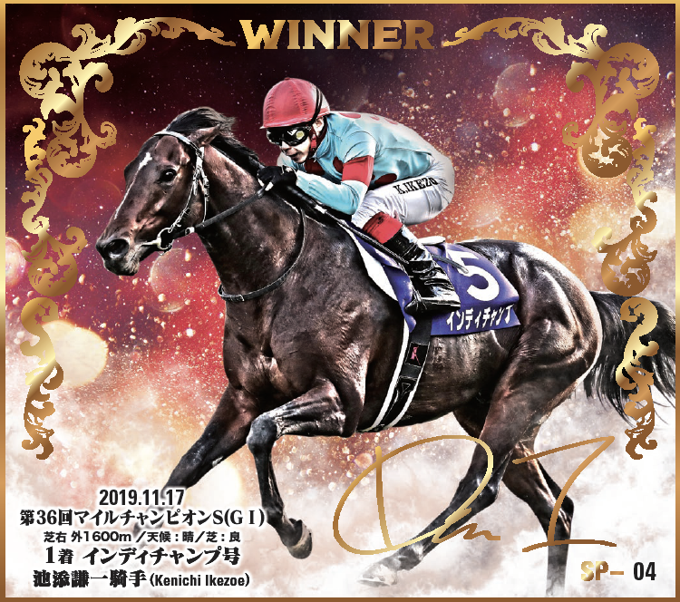 ☆更に池添謙一騎手の直筆サイン入りインディチャンプ号mini色紙1枚(絵柄は第36回マイルCS)+石神深一騎手直筆サイン入りオジュウチョウサンmini色紙を1枚プレゼント!(mini色紙の絵柄は選べません。)