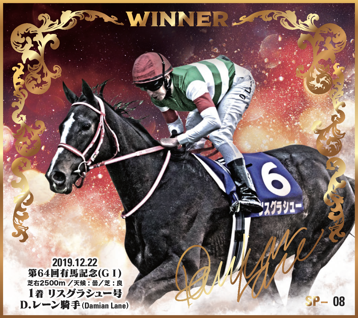 ☆更にD.レーン騎手の直筆サイン入りリスグラシュー号mini色紙1枚(絵柄は第64回有馬記念)
