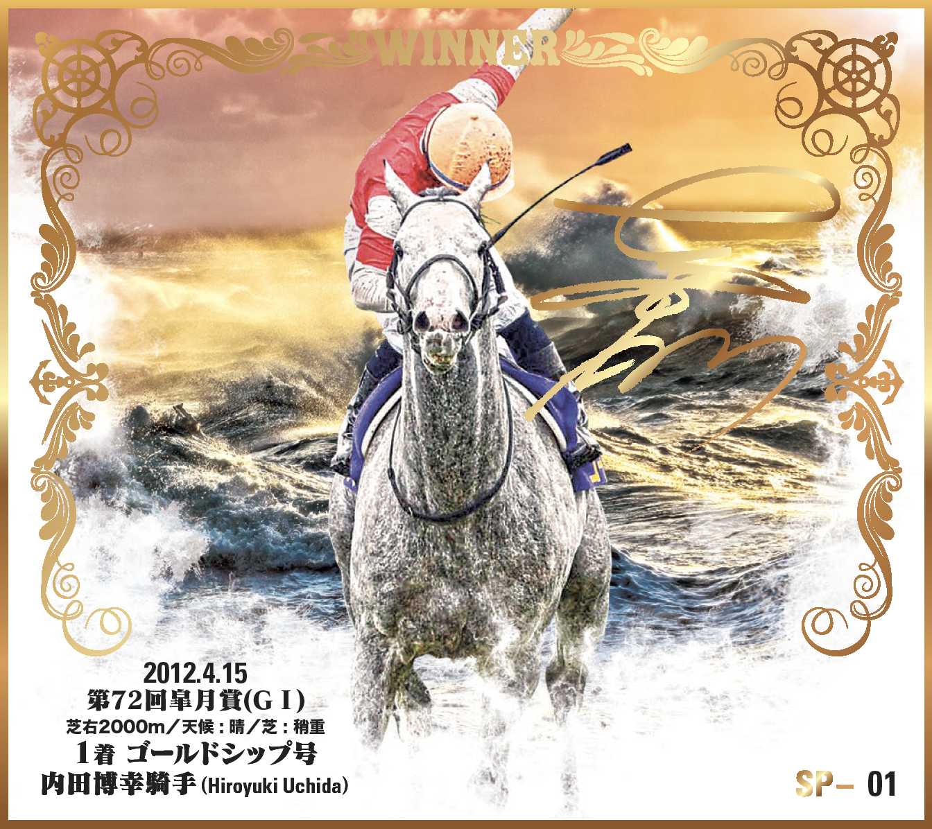 ☆更に内田博幸騎手の直筆サイン入りゴールドシップ号mini色紙1枚(絵柄は選べません。)