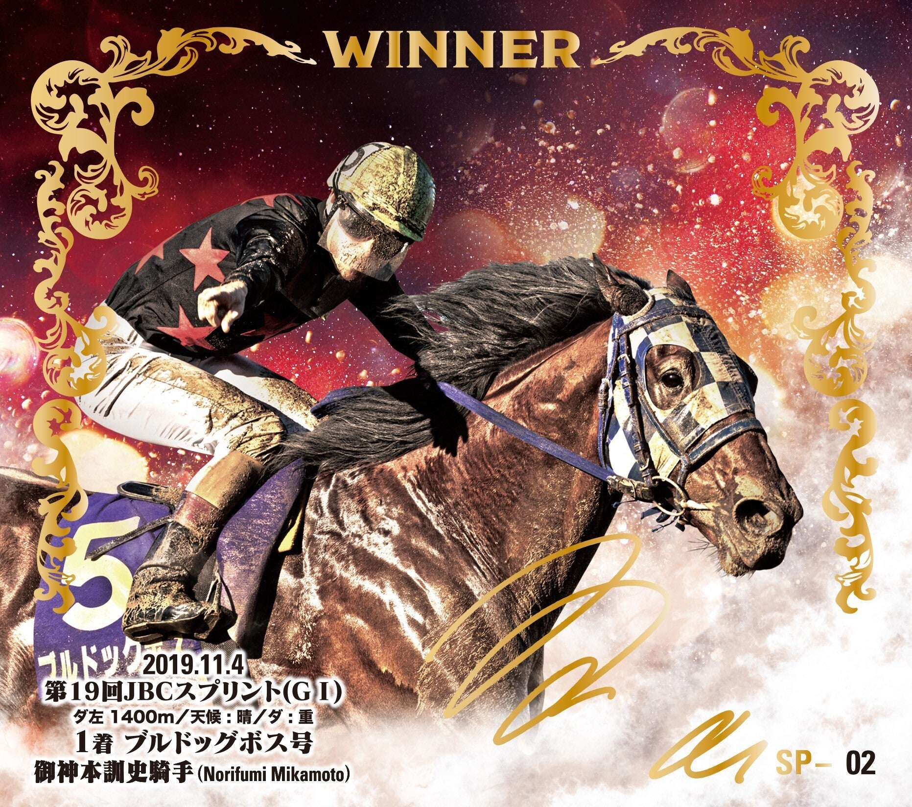 ☆更に御神本訓史騎手の直筆サイン入りブルドッグボス号mini色紙1枚(絵柄は第19回JBCスプリント)