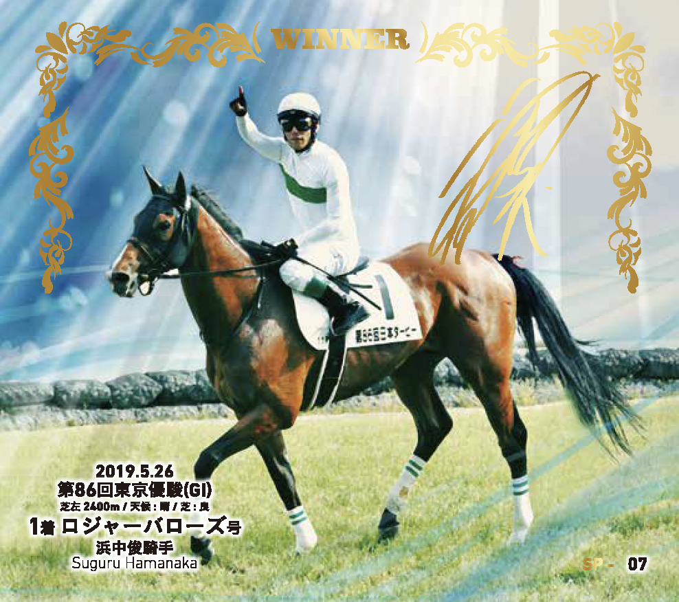 ☆更に角居勝彦調教師の直筆サイン入りサートゥルナーリア号orロジャーバローズ号mini色紙どちらか1枚(サートゥルナーリア号は皐月賞、ロジャーバローズ号は日本ダービーの絵柄となりますが、お選びいただけませんので予めご了承下さい。)+あなたのお名前入り石神深一騎手直筆サイン入りオジュウチョウサンmini色紙を5枚プレゼント!