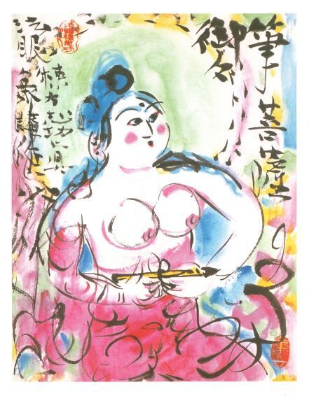 世界的有名な棟方志功画伯(筆菩薩:絵画上)、現代書道の父 比田井天来先生(写真上)を始め多くの方との深い交流により、よりよい筆への追及に没頭しました。