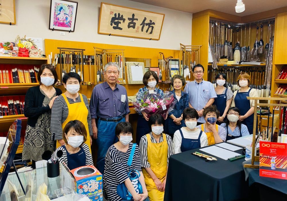 2020/12/01 21:50皆様、その後いかがお過ごしでしょうか?早いもので12月…随分寒くなりました。皆様からの温かいご支援や応援メッセージは今でも励みになっております。感謝の日々です^^デパート催事が少しずつ再開しておりますがコロナ禍でまたもや外出自粛モード…ご来店のお客様も少ないためやはり直接触れ合う機会がなかなかありません。そんな中でも、パッケージを明るく季節感もだそうとウインター&クリスマスパッケージを用意してネットショップにも掲載しております。ホログラム紙を使用したパッケージはなかなか人気です!各画像クリックで公式ショップクリスマス限定セットへさて、本日はリターン品に仕上げ体験を選択された支援者の方が先週ご来店くださいましたので皆様にもシェアさせていただきます。なんと、関東方面からご夫妻がご来店。ご遠方ありがとうございます!奥様は以前から書を嗜んでおられ熊野に一度来てみたい…と思っておられたそうです。ご主人様は一眼レフカメラを肩にかけて旅を写真に残そうとしておられましたが今回はせっかくなのでお二人一緒に筆づくり最終工程「仕上げ体験」です。画像クリックで公式ホームページ「仕上げ体験」詳細へまずは我が社の伝統工芸士 香川翆皐(すいこう)が筆づくりの工程を丁寧に説明し、仕上げを実際に伝授。お二人とも熱心に聞き、しっかり香川の手元をご覧になっています。さぁ!いよいよお客様自身が体験!まずは海藻の糊(フノリ)を穂に浸み込ませます。穂が軸に埋まって部分までしっかり浸み込ませます。トントントントントントン「いつまでトントンすればいいのかわからない…」職人さんは手に伝わる感覚とトントンする時の音で判断するのです。お二人ともとても器用な方でスムーズにノリが穂に浸み込んでいきました。穂に浸み込んだ余分な糊を金櫛で取り除きます。櫛の持ち方が意外と難しいのですがこの作業も綺麗な手捌きでクリア^^穂の根元に糸を巻いて右手に握った軸をクルクルと回しながら更に余分な糊を絞りながら毛がねじれないように真っすぐに…これが一番やねこい(広島弁)んです・笑今回はクラウドファンディング特別企画で2本(大筆・小筆)を体験していただきました。※通常は黒軸の大筆1本のみ軸には事前にお知らせ頂いていたお名前を彫り担当スタッフが準備。世界に一つだけのマイ筆が完成!この後、お二人を筆の里工房という筆の資料館にご案内しお別れしました。御縁をありがとうございます。この日の夕食は瀬戸内海で採れるお魚料理が食べたい…ということで広島市内の和食屋さんに行かれたようです。広島・熊野の旅、そして仕上げ体験いかがだったでしょうか?私達は支援者様と直接触れ合えたこと、とても嬉しかったです。また是非いらしてください。また我が社の近況報告や新企画等これからも発信し続けてまいります。どうぞ見守っていただければこの上なく幸せです。皆様もお身体どうぞご自愛なさって素敵な年末年始をお過ごしください^^では…また♡-古に仿う 古を繋ぐ-株式会社 仿古堂代表 井原 倫子 もっと見る