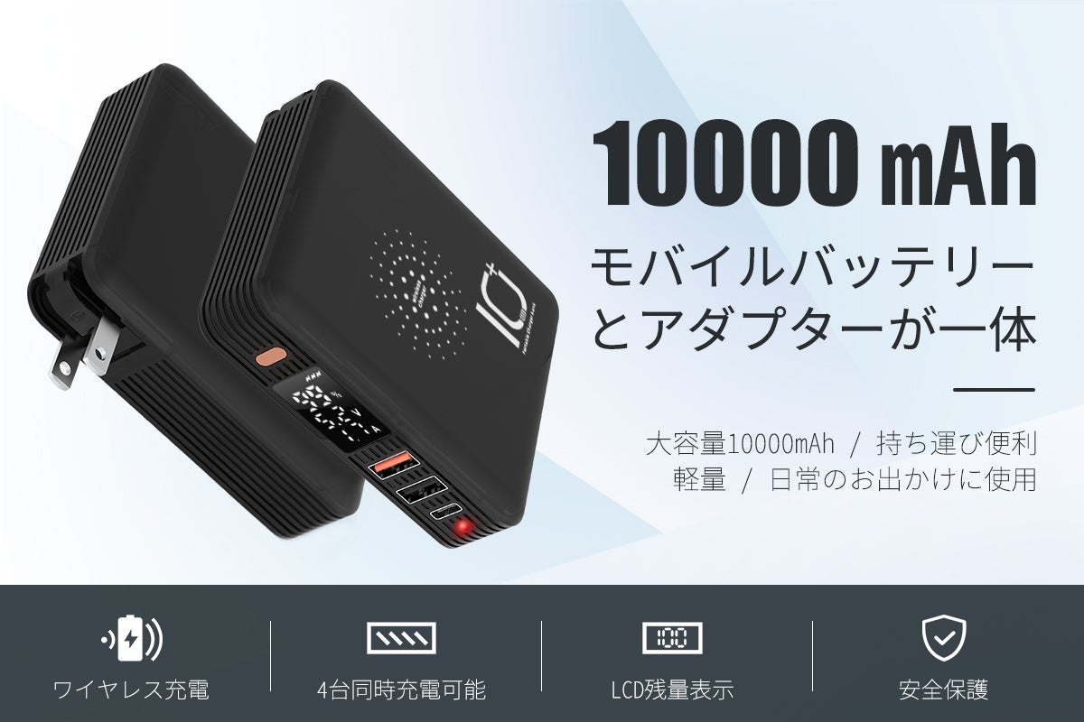なんと10000mAhの大容量で出張、旅行、山登り、キャンプなど外出時や、消耗の激しいのゲームや、電気の使えない災害時など様々なシーンで大活躍致します。
