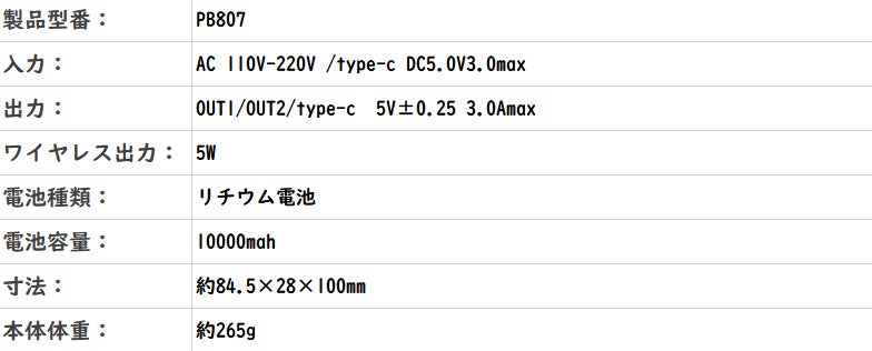 USB×2(出力のみ) type‐C×1(入出力可能) QIワイヤレス充電(置き型)