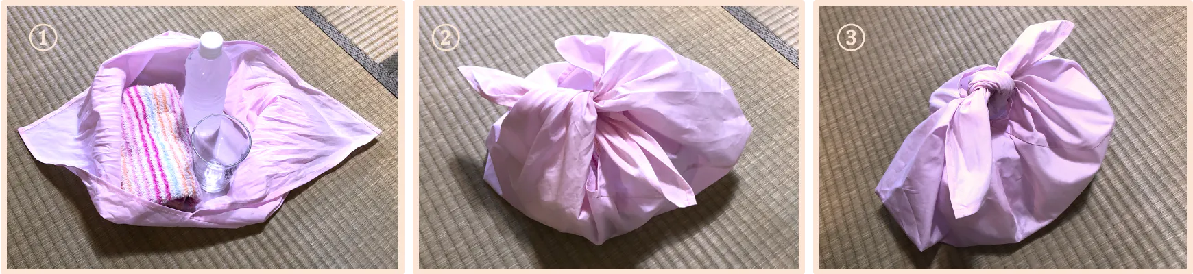 ・風呂敷よりも簡単に包めて、使っていない時には小さくたためるから邪魔にならないでしゅ。