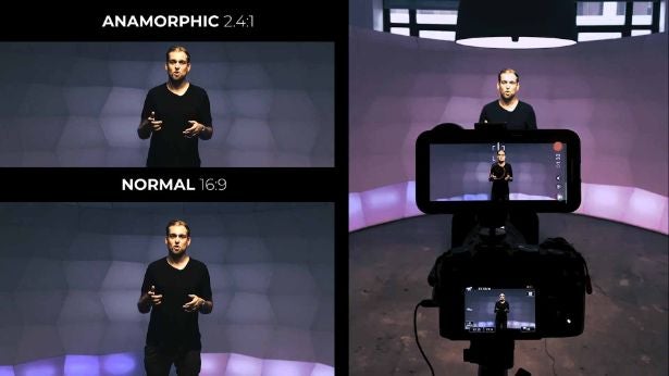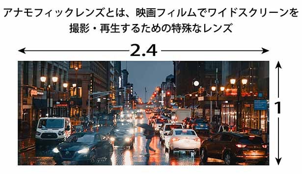 アナモフィックレンズとは、横長(2.4:1)のシネマスコープ映像を撮影するための特殊なレンズです。