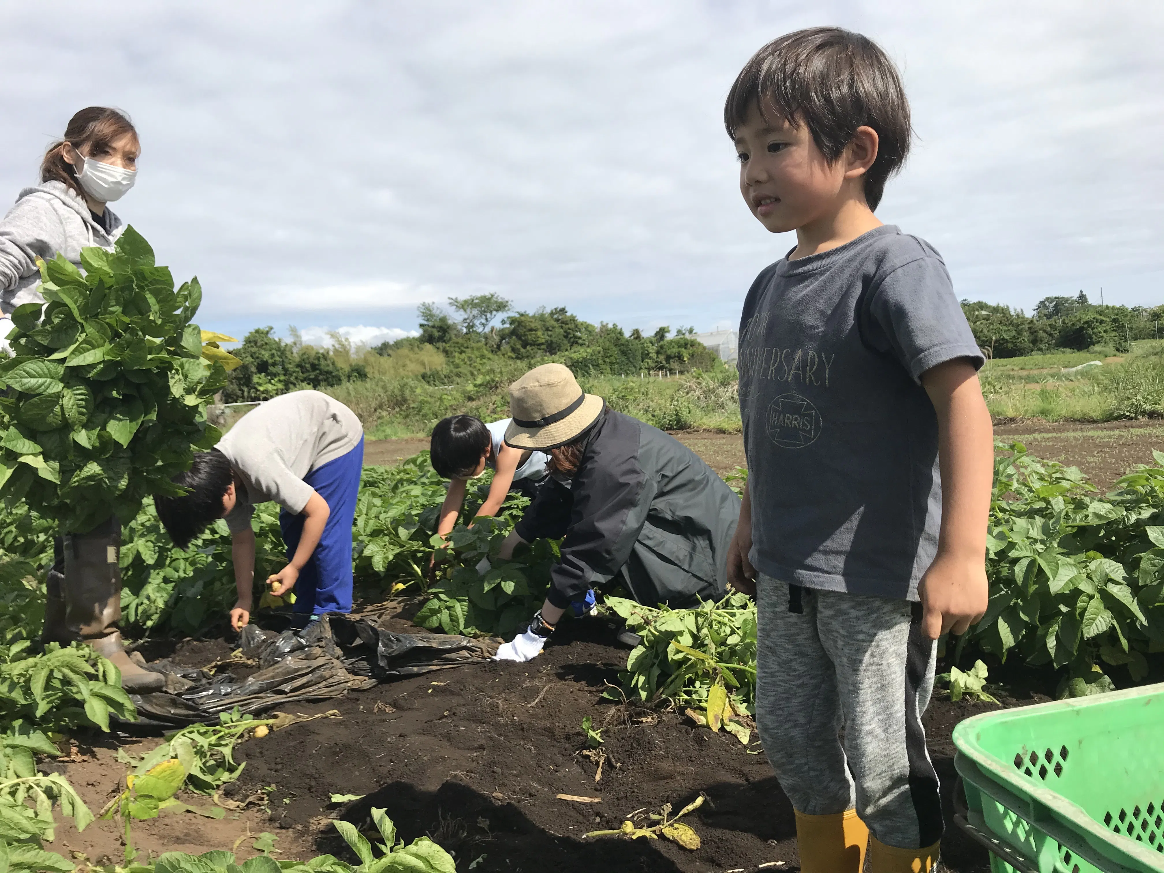 また、作業には子どもにも参加してもらい、子どもたちにも畑仕事についても体験してもらっています。畑仕事だけでなく、普段の生活ではなかなかできない土いじりや虫取りなども楽しんでもらっています。