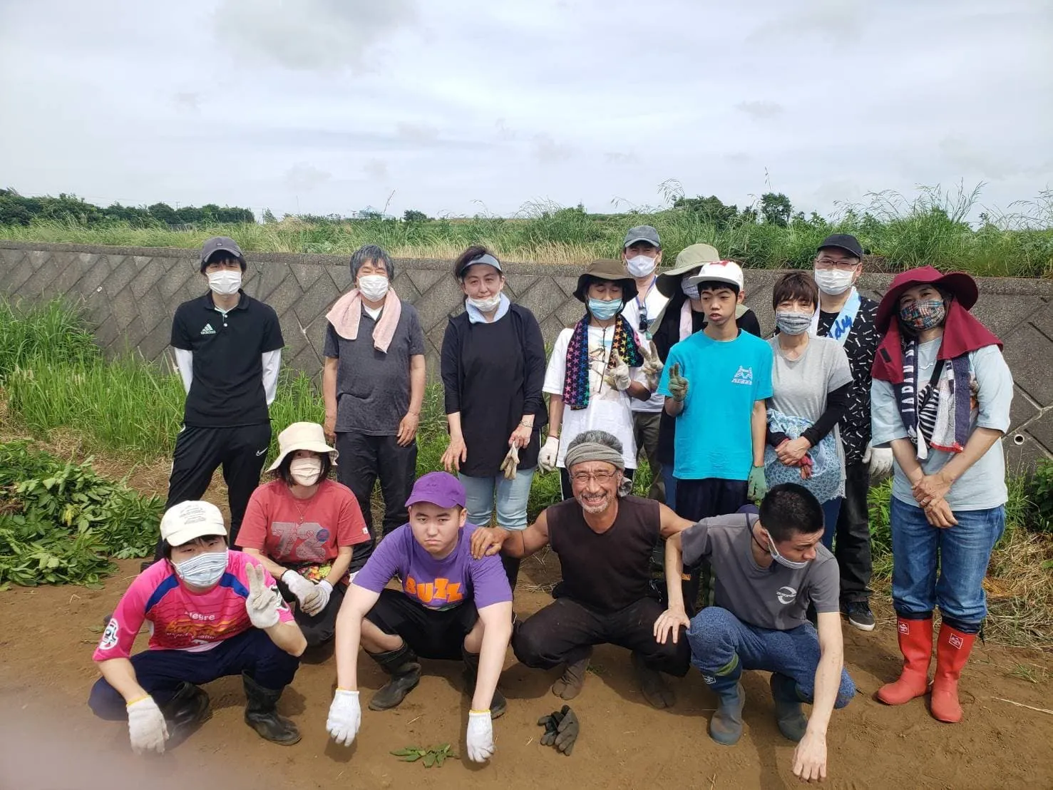 カラフル農園とは自閉症、水頭症、結節性硬化症、知的しょう害などの特性を持つ青年7人が、かんた村の畑をお借りして、指導を受けて農作業をしている団体です。5月には3種類のじゃが芋を収穫、販売をさせてもらいました。今はナス、人参にとりかかっています。目標は『仕事にする』です。長い道のりだと思いますが、継続を力に変えて少しずつでも前に進むことが出来ればと思っています。