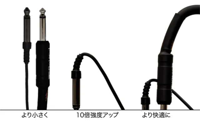 ジャックプラグは、プラグの内部でワイヤーが接続されており、一般的なものよりも小さく柔軟で、10倍の強度を持っています。これにより外力が接続に触れるのを防ぎ、ジャックプラグとジャック入力の障害を防ぎます。