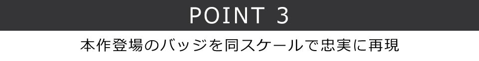 本作登場のバッジを同スケールで忠実に再現