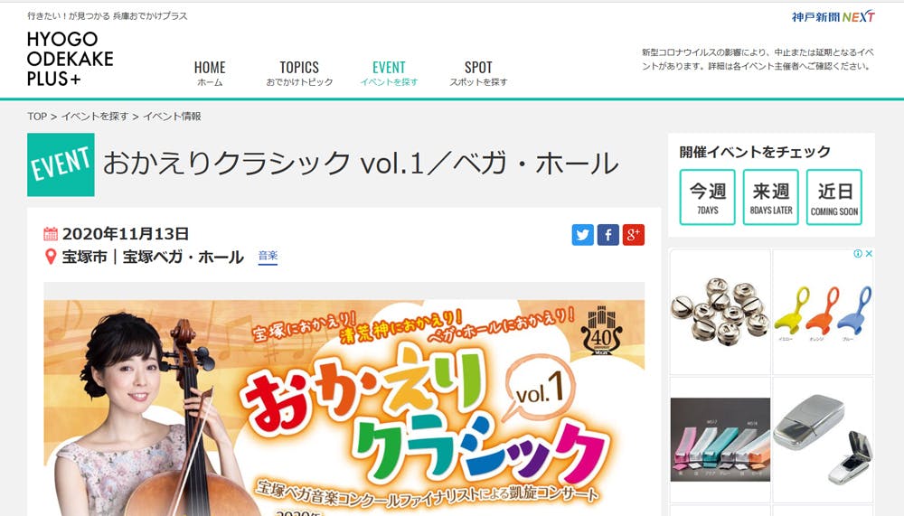 11月13日(金)14:00~「おかえりクラシック Vol.1」於:宝塚ベガ・ホール